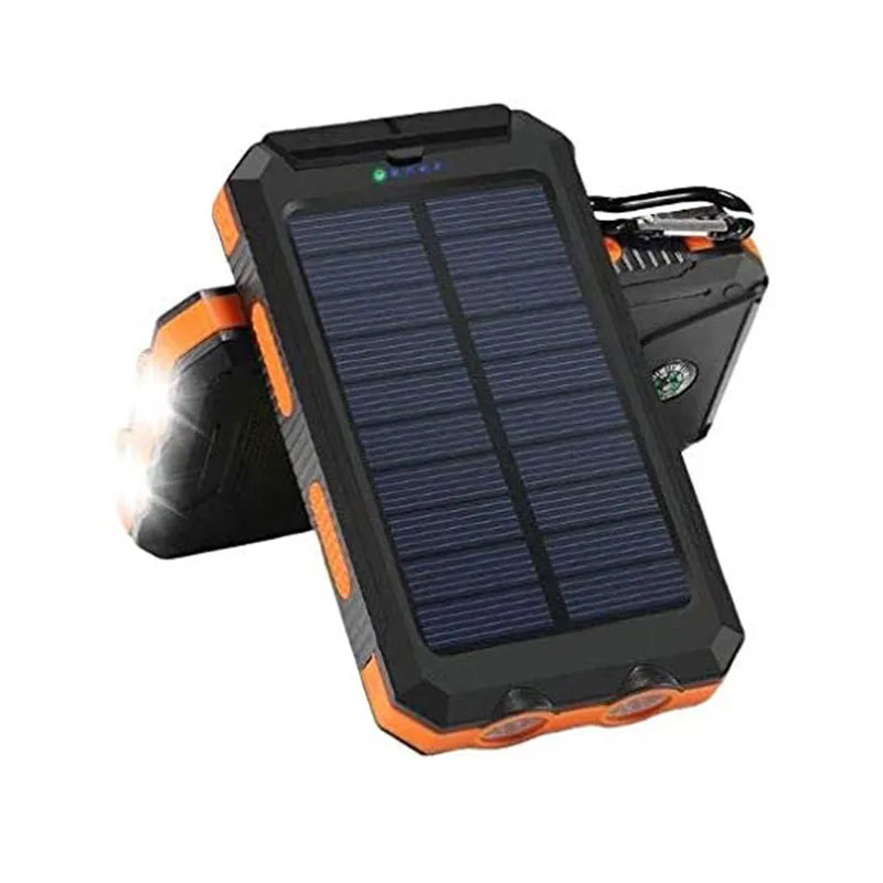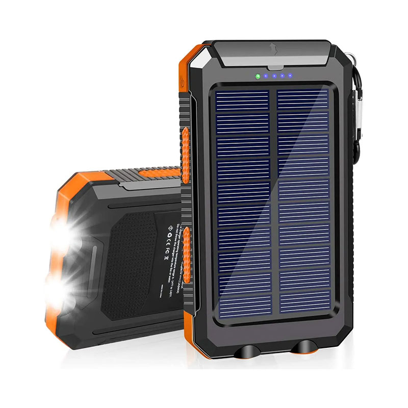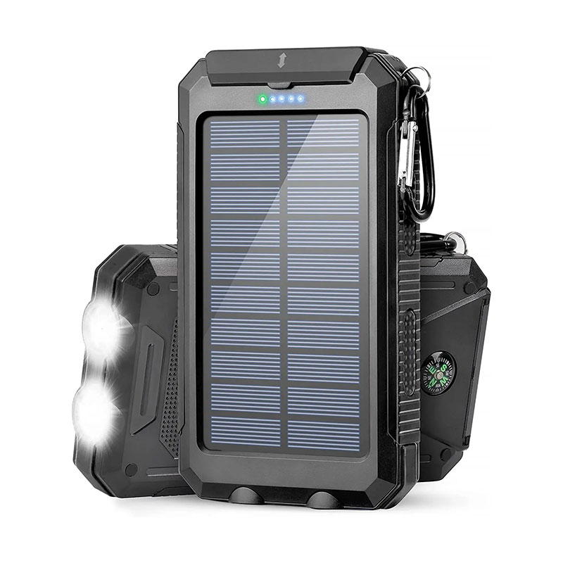 Dual USB နှင့် Powerful LED Light- စမတ်ဖုန်းနှစ်လုံးကို တစ်ပြိုင်နက် အားသွင်းရန် သို့မဟုတ် တက်ဘလက်ကို အရှိန်အပြည့်ဖြင့် အားသွင်းရန် လွယ်ကူစေသည်။ 2led မီးများကို Steady-SOS-Strobe မုဒ်ဖြင့် လက်နှိပ်ဓာတ်မီးအဖြစ် အသုံးပြုနိုင်သည်။ ရှေ့ပြေးညွှန်ကိန်းငါးခုသည် ဘက်ထရီအားသွင်းကိရိယာ၏အခြေအနေကို အချိန်နှင့်တစ်ပြေးညီပြသသည်။ နေရောင်ခြည်ဖြင့် အားသွင်းသောအခါတွင် အစိမ်းရောင်မီး၊ USB အားသွင်းသည့်အခါတွင် အပြာရောင်မီးပွင့်သည်။